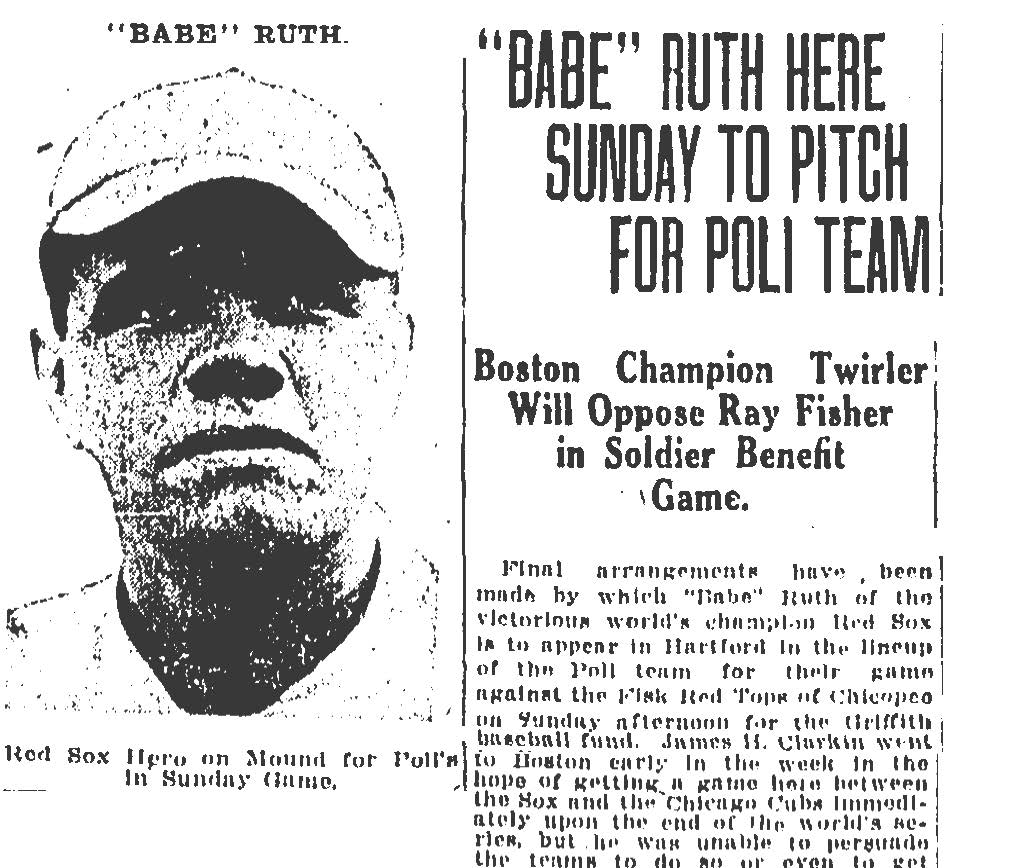 Amore, Dom, “In 1918, as a pandemic ripped through Hartford, Babe Ruth drew big crowds at the worst possible time,” Hartford Courant, April 9, 2020, https://www.courant.com/sports/baseball/hc-sp-baseball-babe-ruth-spanish-flu-20200409-20200409-uz3ee3epyrem7nm5rth7st5p3q-story.html.