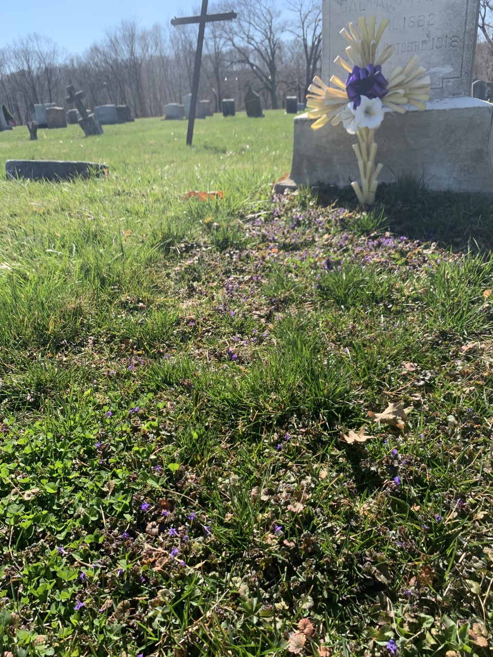 Much like everyone else practicing physical distancing while the state is under lock down, I had to find new ways to exercise instead of going to the gym. So to alleviate that, I run through a nearby Catholic cemetery. There was one particular grave that caught my eye because the perimeter of it was surrounded by purple flowers, so I decided to take a closer look.