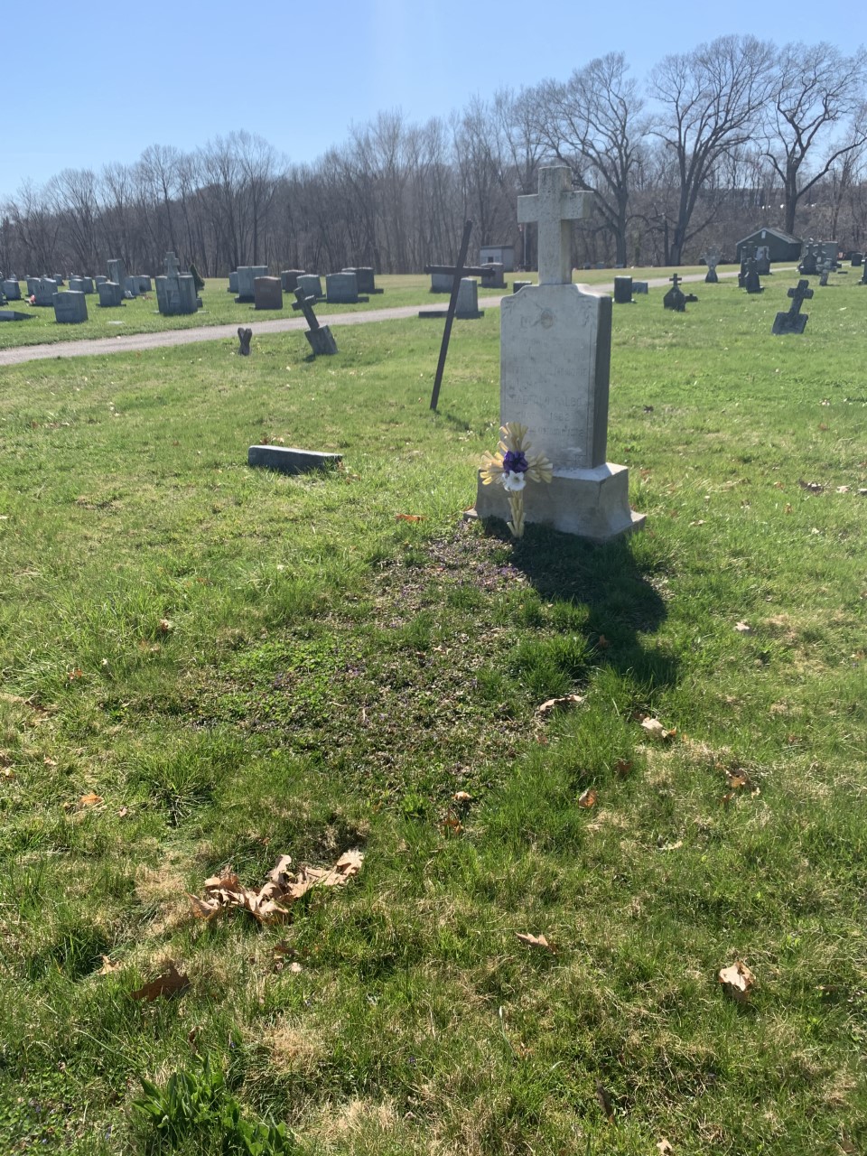 His name was Gaetano Fallo, the headstone was in Italian. He was born in 1882 and died October 14, 1918, he was 36 years old. I assumed based on the date of his death and his age that he likely died from the flu. I looked him up in the 1910 census data and it stated he immigrated to the U.S. in 1903, was married to Rosaria Fallo and had one child, Lucia Fallo. He worked as a silk weaver, could not read or write and lived with 15 other people in a boarding house.